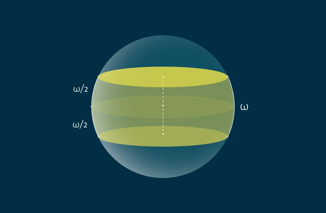 Жёлтым цветом на сфере обозначена одна зона ширины ω.