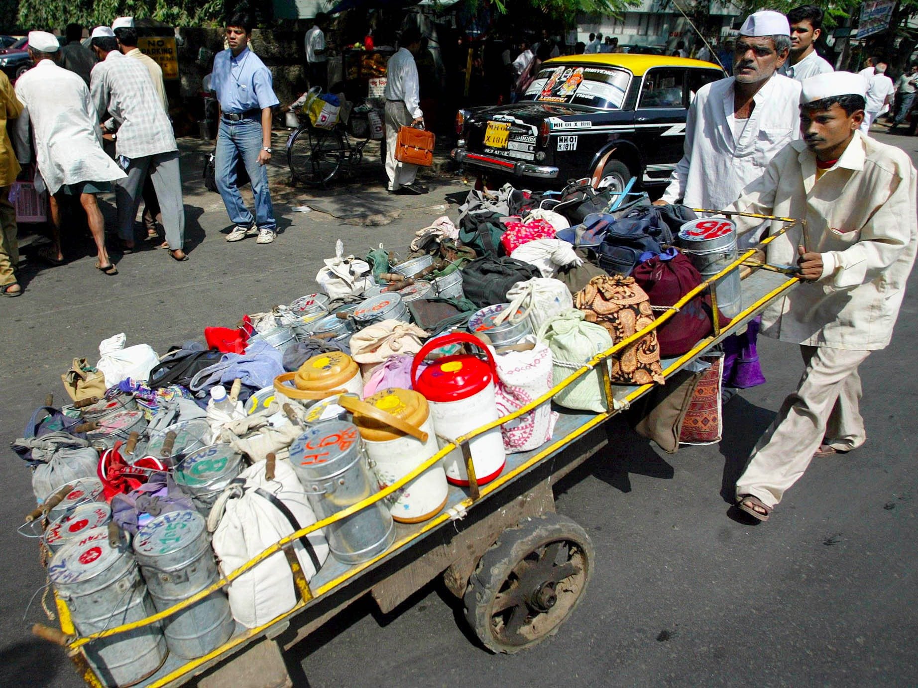 Индия: Дабавала В городе Мумбаи наиболее часто встречаются dabbawala мужчины, доставляющие горячие обеды по всему городу. Они собирают домашние блюда из резиденций по всему городу (в том числе несколько дальних пригородов) и распределяют их по заказам.