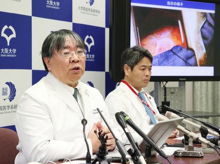 Фотография к заголовку: профессор Осакского университета Сава Ёсики на пресс-конференции после подачи заявки на проведение клинических исследований лечения сердечной недостаточности с использованием iPS-клеток, 21 июля 2017 г., преф. Осака, город Суйта (фотография предоставлена Jiji Press)