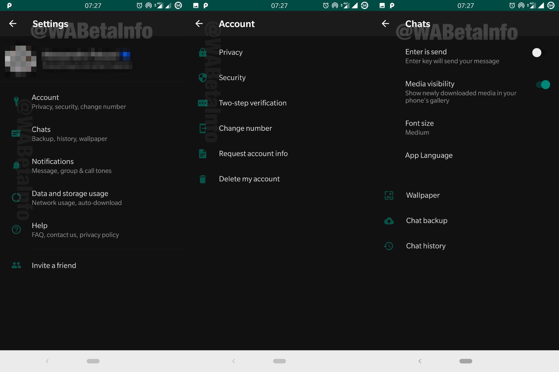 Разработчики WhatsApp тестируют темную тему оформления. Эта возможность была обнаружена в бета-версии мессенджера (2.19.82) для Android: после активации "ночного режима" практически весь интерфейс приложения перекрашивается в темно-серую цветовую гамму. Однако некоторые элементы, включая строку статуса, иконки и переключатели, сохраняют фирменный зеленый цвет.