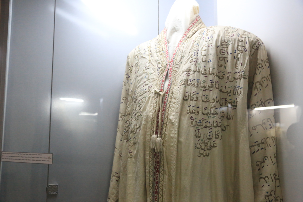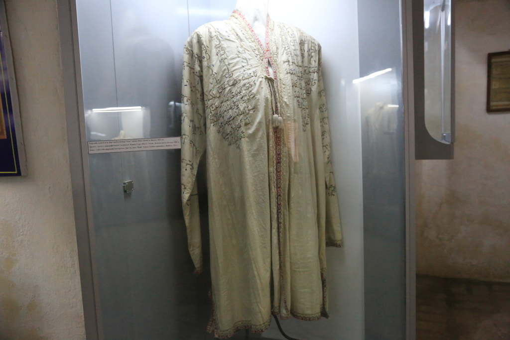 Құран аяттары жазылған бұл шапанның көрінісі бізге де қызық көрінді.