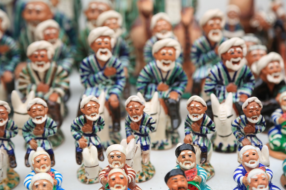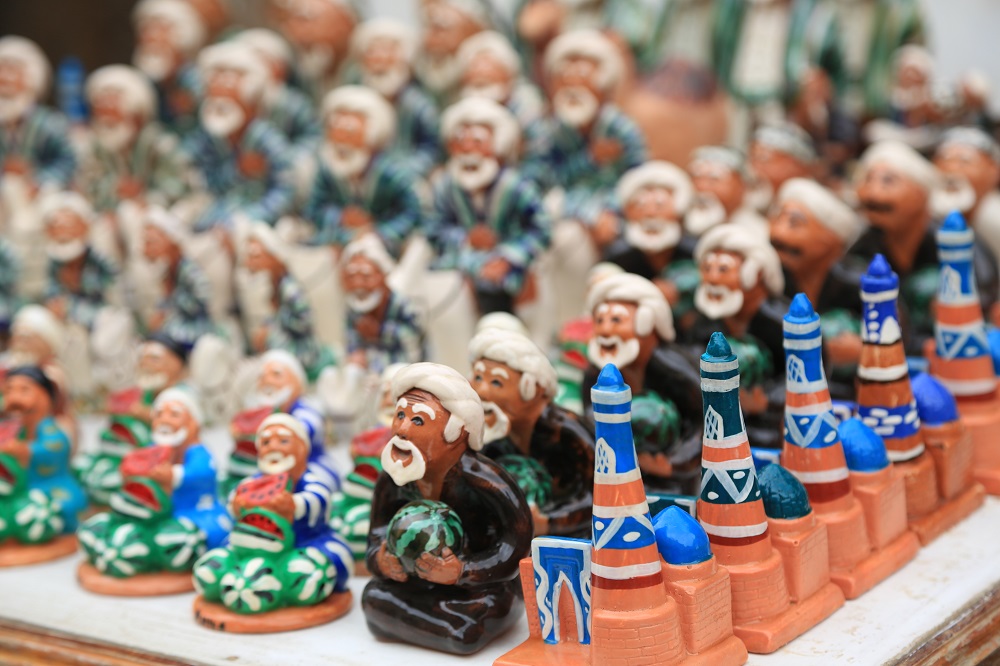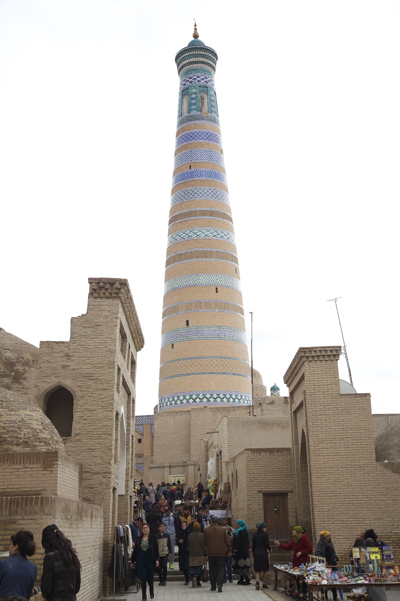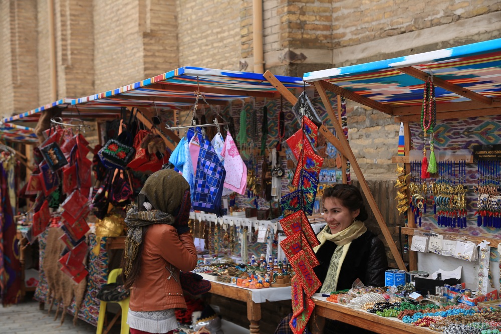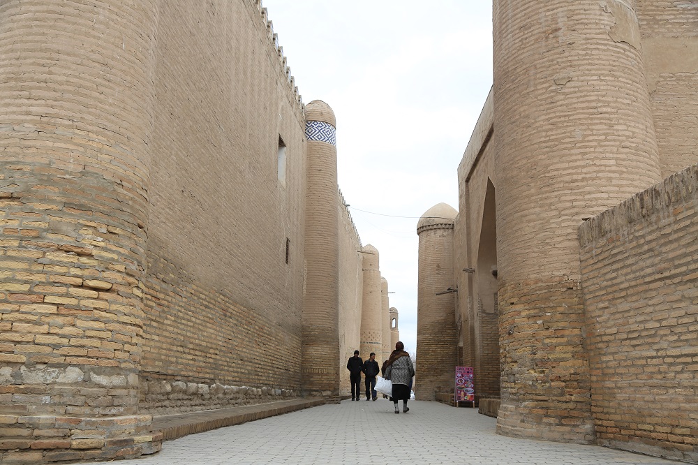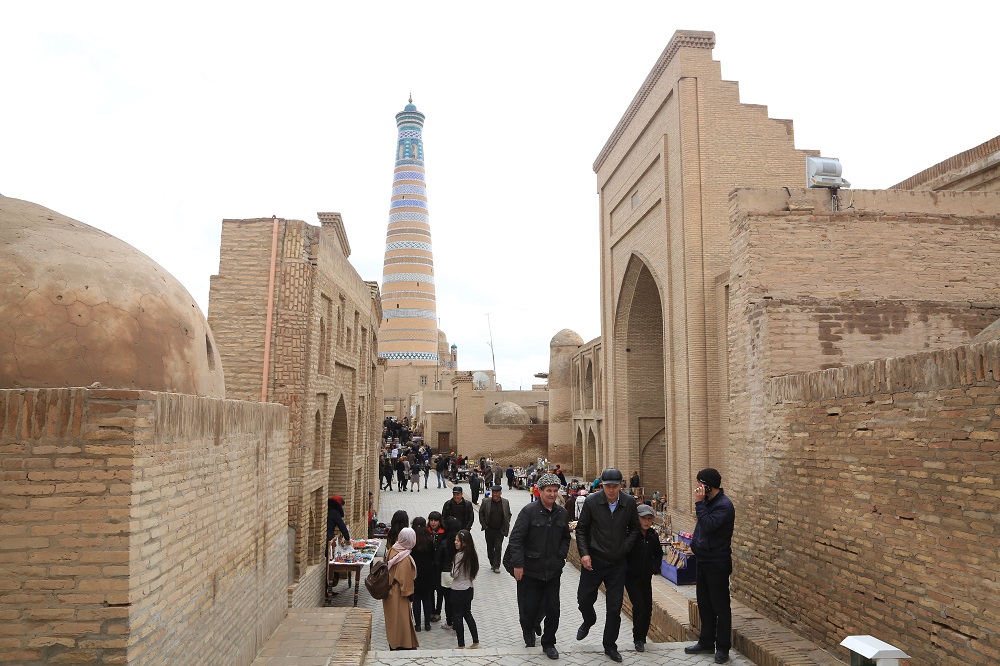 Ескі қаланың қақпасынан ене бере-ақ, бізді осындай көрініс қарсы қалды. Ескерткіш сыйлықтар, сувенирлер, өзбектің ұлттық киімдерін сатып тұрған саудагерлер баршылық.