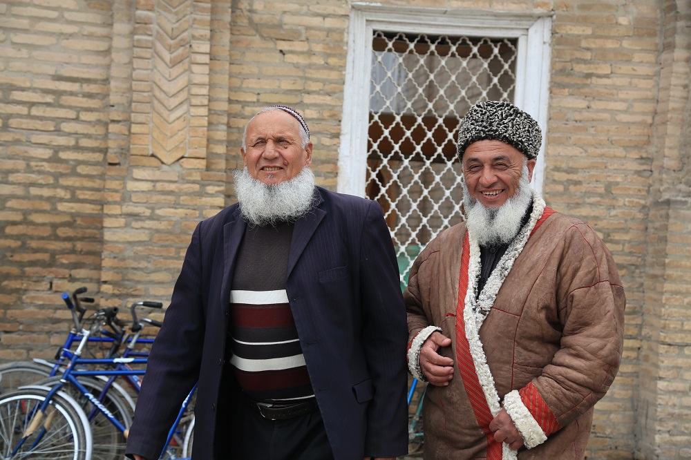 Жарқын жүзбен жұма намазына бара жатқан өзбек қариялары.