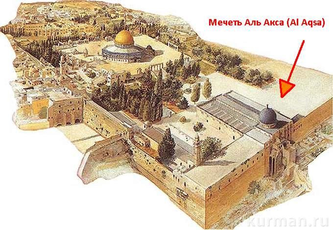 Ақса мешітінің мұсылмандар үшін де қасиетті болып саналуына тағы бір себеп – пайғамбарымыз Мұхаммедтің (с.ғ.с.) өмірінде орын алған айтулы Исра және Миғраж оқиғаларына осы мекеннің қатыстылығы. Құранда ол туралы: «Құлына өзінің бірқатар аяттарын көрсету үшін бір түнде Харам мешітінен маңайы мүбәрак етілген Ақса мешітіне апарған Алланың мәртебесі қандай ұлы! Күмәнсіз ол естуші әрі көруші» («Исра» сүресі, 1-аят), – делінген дерек бар. Ардақты расулымыз (с.ғ.с.) осы мешітте бүкіл пайғамбарларға имам болып намаз оқытқан.