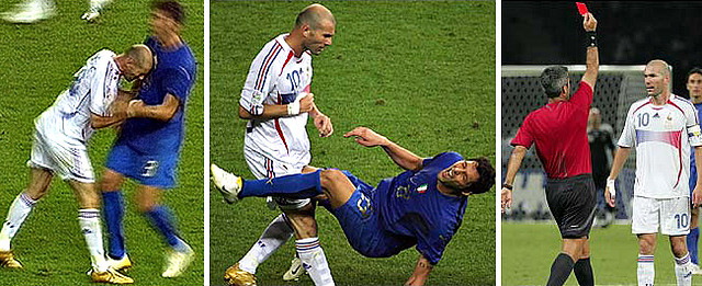 2006 жылғы Әлем чемпионатынан кейін Зинедин Зидан футболшылық карьерасын аяқтайтынын мәлімдеді. Бірақ Франция мен Италияның финалдық кездесуінде күтпеген жағдай орын алып, итальяндық Марко Матерацциді басымен ұрған Зиданға қызыл карточка көрсетіліп, алаңнан қуылады. Демін ішіне алып, Францияға қолдау көрсетіп отырған жанкүйер жеңіске қол созымдай қалған кезде істің бұлай насырға шапқанына «аһ» ұрды. Халық жеңісті қолдан шығарып алғанына, алаңда сабырлық таныта алмағанына қарамастан Зиданның жағында еді. Бірақ салмақты, біртоға футболшыдан мұндай қылық шығады деп ешкім ойламаған болатын. Оны сондай жағдайға итермелеген дүние не болды екен? Бұл туралы да сан-саққа әңгіме кетті. Біреулер Марко Зиданды «араб террорисі» атапты десе, енді біреулер басқа деп жатты. Зиданның өзі көпке дейін итальяндықтың өзіне не дегенін: «Оны айтуға аузым да бармайды» деп жасырып келсе, кейін оның Зиданның анасы мен әпкесіне тіл тигізгені мәлім болды. Әйел адамның ар-намысын қатаң қорғайтын мұсылмандар үшін бұл ашуланатын-ақ жағдай еді. 2006 жылдың қазанында Марко Матерации: «Мен Зиданға ақиқатында не дедім?» деген кітап шығарды. Ал спортшыға лайық емес тәртібіне қарамастан, Зидан осы чемпионаттың үздік футболшысы атанды.
