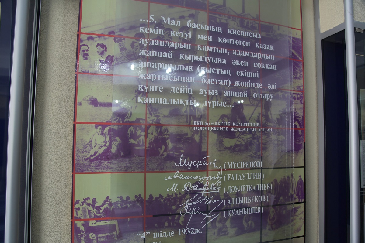 Музейдегі мына бір суреттің жанына келгенде, халық жиі айтатын, кез келгеннің қолынан келе бермейтін Ғабит Мүсіреповтің үш ерлігі есіме түсті. Ғабең - қазақ басына қара бұлт төнген сонау ашаршылық жылдары қырылып жатқан халқына араша сұрап, Сталинге хат жазған бесеудің біреуі. Бұл туралы ақын Мұхтар Шаханов: "30-жылдардың басында Голощекин қазақ жерінде қолдан ашаршылық ұйымдастырды. Қазақстанды ол басқарған сегіз жылға тарта уақытта және оның алдындағы қанды кезеңді қоса есептегенде, 4 миллион 100 мыңға жуық қазақ аштан қырылған екен. Голощекин «Қазақстанда кеңес үкіметі әлі орнаған жоқ, сондықтан кіші қазан төңкерісі қажет» деген сылтаумен өз күнін әзер көріп отырған қарапайым шаруаға арнап 16 түрлі салық ойлап шығарады. Талшық етіп отырған тамағын, малын тартып алғаннан кейін қазақ қырылмағанда кім қырылсын?! Қазақ халқының басына төнген бұл қасірет туралы ұлтымыздың оқыған зиялы қауымы айтудан, жазудан ат-тонын ала қашып, аузына су толтырып алғандай үндемеді. Тек үш-ақ адам жанкештілікке барып, даралана бой көрсетті. Оның бірі осы жойқын әділетсіздікке қарсы күреске өзінен басқа тағы төрт адамды тартып, «Бесеудің хаты» деген атпен жоғарғы билікке батыл наразылық білдірген Ғабит Мүсірепов болса, екіншісі Сталинге өз тарапынан еркектік мінез көрсеткен Тұрар Рысқұлов, үшіншісі Ораз Жандосов еді. Әбден қаһарына мінген Голощекин Мүсіреповке: «Өзің көрген қателікті өзің түзетуге жәрдем бер», – деп Қостанайға алты айға іссапарға жібереді. Осы мерзім ішінде Сталин Голощекинді орнынан тайдырмағанда, Мүсіреповтің Алматыға аман-сау қайтуы неғайбыл еді", - деп еске алады.
