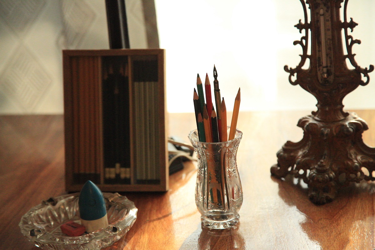 Ал мына қарындаштарды Ғабит Мүсірепов негізінен жазуға пайдаланған. Өйткені, оның тазалыққа жаны құмар болғаны сондай, қарындашпен жазып, қате кетсе өшіріп, бірден тазалап жазып отырған. Нәтижесінде, ол қолжазбаларын бір-ақ рет жазған.