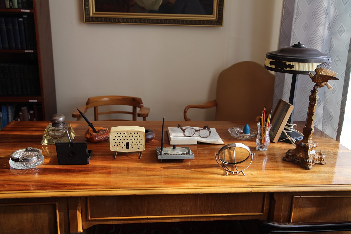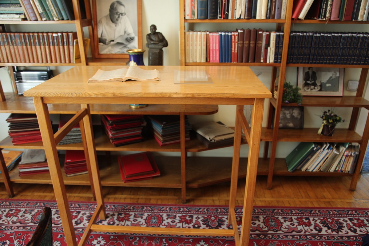 – Ол үстелді Ғабең өмірінің соңына қарай тапсырыспен жасатқан. Үнемі отырғаннан шаршайтын болуы керек, бір уақыт түрегеп тұрып та жазған. Кітап оқығанда да жаңағы үстелге сүйеніп тұрып оқыған. Сондай мақсатпен жасатқан, тұрған адамның кеудесінен келетін биік үстел.