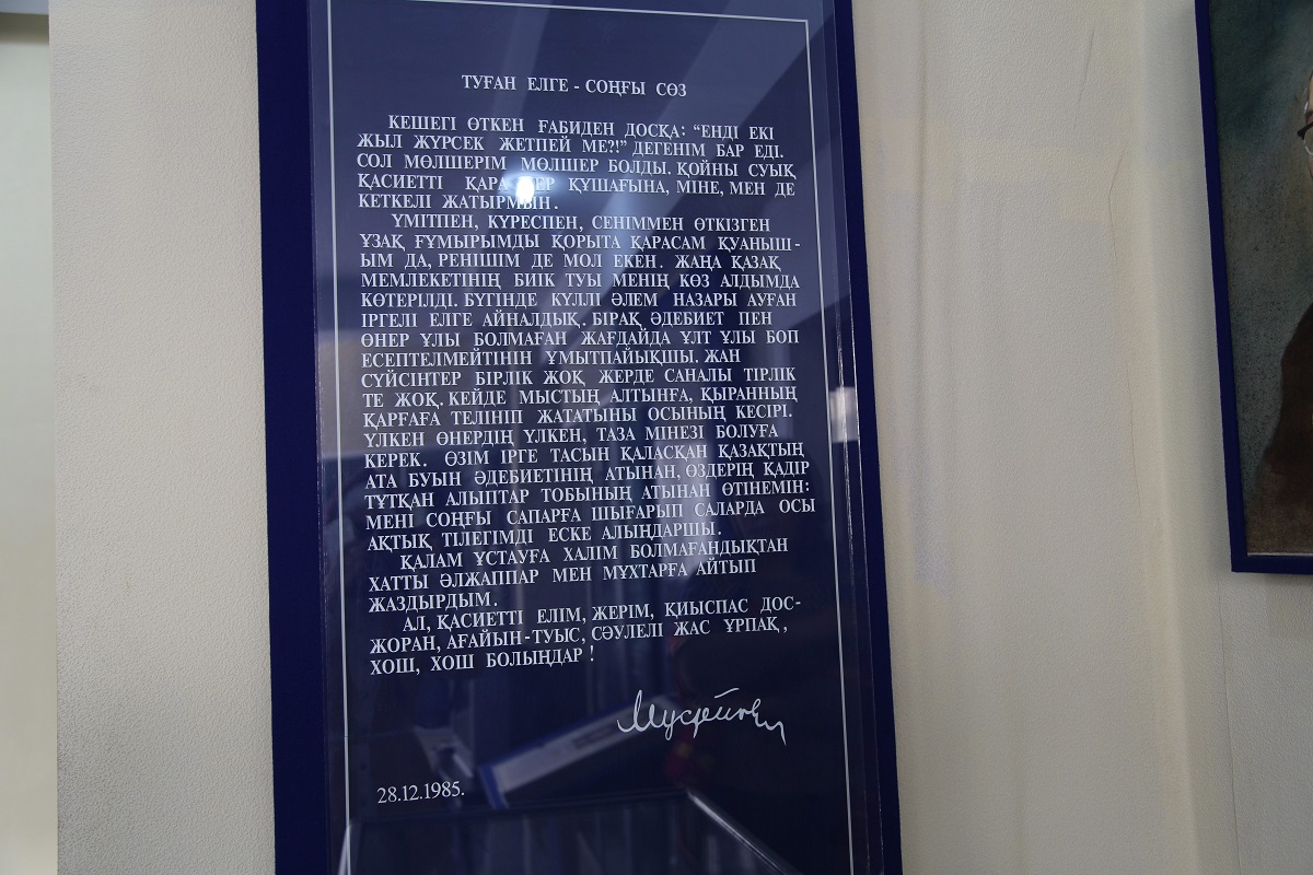 Музейге кірерден бұрын ақын, Халықаралық «Алаш» әдеби сыйлығының лауреаты, С.Мұқанов пен Ғ.Мүсіреповтің мемлекеттік әдеби-мемориалдық мұражай кешенінің директоры Әділғазы Қайырбековпен әңгімелестік.
