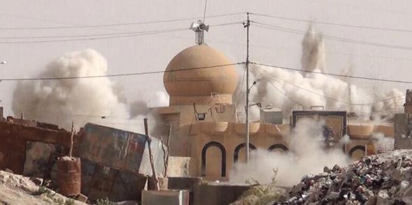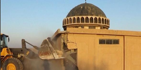 «Жер астынан жік шікті, екі құлағы тік шықты» демекші, өткен аптада Ирак және Сирия елдерінде «Ирак және Сирия Ислам мемлекеті» деп аталатын террорлық ұйымы бой көрсеткендігін хабарлаған едік (http://islam.kz/kk/news/alem/isim-qagbany-qulatamyz-307/). Енді топтың аты «Ислам мемлекеті» деп өзгертіліпті. Ол ол ма «Шаш ал десең, бас алатын» әлгі содырлар енді мешіттер мен мазарларды қиратуды бастапты. Алдымен олар Масул аймағын басып алып, одан Найнаваның шеткі аймақтарындағы сүннит-арабтардың ауданына қарасты төрт храм мен алты мешітті жермен-жексен етті. Суреттерден байқағанымыздай олар аталған ғимараттарды қиратуға бульдозер, одан қала берді жарылғыш заттар қолданған.