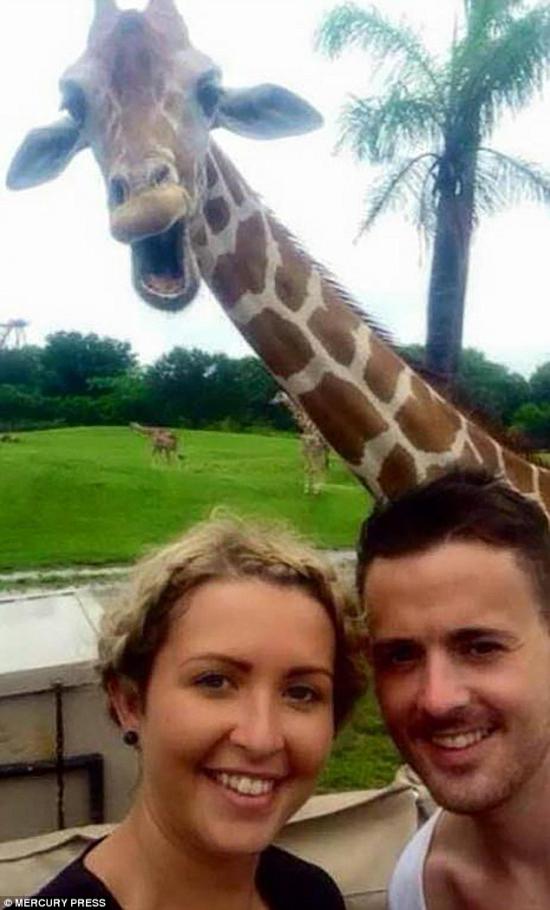 Baq.kz порталының The Daily Mail ақпарат көзіне сілтеме жасай отырып таратқан хабарына қарағанда, АҚШ-та саяхаттап жүрген ирландық туристер кездейсоқ жирафтың "күлкісін" суретке түсіріп алған. Жігіт пен қыз селфи-суретке түсіп жатқан сәтте олардың артына жираф келіп тұра қалған. Ал, кадрдағы керемет көріністі олар арада бірнеше күн өткеннен кейін ғана байқағандарын айтып отыр.