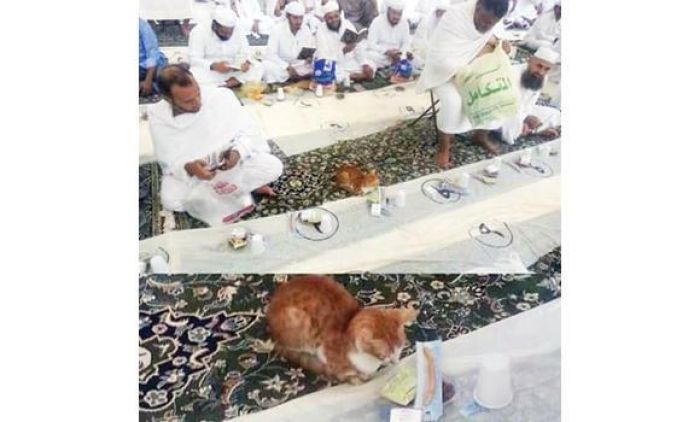 «Мекке мешіттерінің бірінде ақшам намазы уақытында мұсылмандармен бірге ауызашар уақытын күткен мысық барша жұртты таң қалдырды», - деп жазады E-islam порталы.
