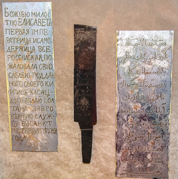 Ресей патшайымы І Елизаветаның Абылай ханға тарту еткен атақты қылыштың бөлігі