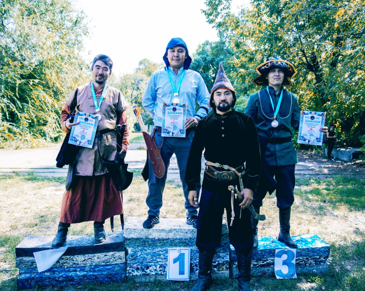 Ертеңгісін басталып, түс қайта аяқталған садақшылар жарысында ерлер арасында үлкен финалда Бақтияр Тұрысбеков топ жарды. Екінші орынды Нұрғали Тұрымбаев еншілесе, үшінші орын Ердәулет Жанханшаға бұйырды. Ерлер арасындағы кіші финалда Айдар Мәсімғазының жебесі нысанаға көбірек дәл тиіп, бірінші орын иеленді. Екінші орынға Алмас Сүлейменов, жүлделі үшінші орынға Еламан Сәкен лайық деп танылды.