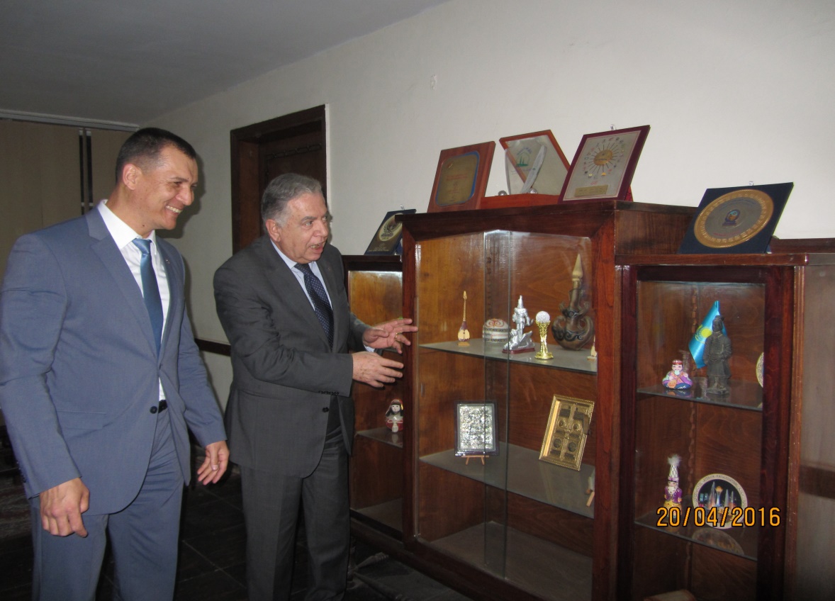 Ректордың Қазақстанға деген ыстық ықыласы ретінде өз кабинетінің жанынан арнайы орнатқан бұл сөреге әртүрлі мүсіндер қойылды. Жүк тасымалы бойынша туындаған аздаған проблемаларға байланысты сөрені толтыру керек болған заттар, өкінішке орай, әлі де елімізде.