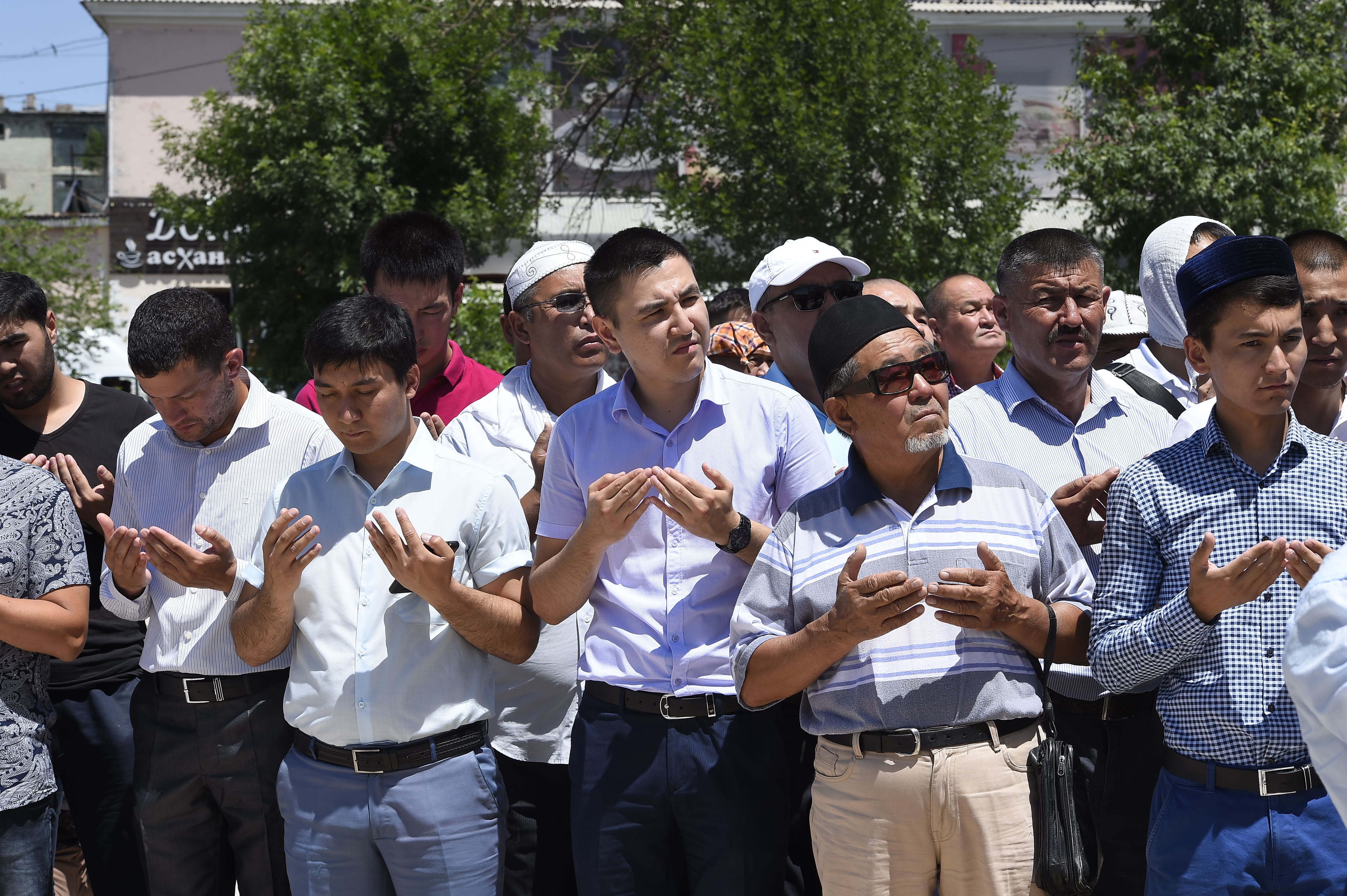 Міне, салқын самал ескен Қошқар ата өзені жағалаундағы құлшылық үйінің төрт құбыласынан “Лә иллаха илаллаһ ”деп Хаққа жүгінген жамағат жайнамазын алып, осында асығуда...