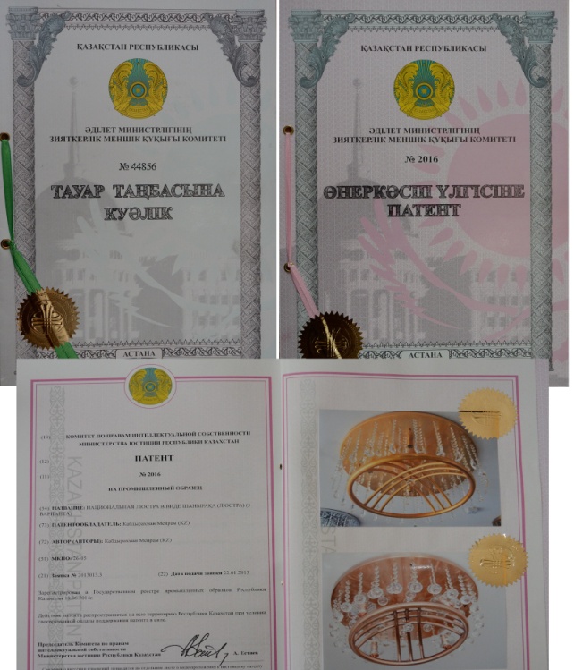 «Бұл шамдардың барлық жабдықтары біздің тапсырысымыз бойынша Тайванда өндірілуде. Өйткені, біз қолданып отырған металдің өзі Қазақстан түгілі ТМД елдерінде жоқ. 1-0,8 миллиметр қалыңдықтағы бұл металл қазіргі таңда Жапония, Германия және Тайвань сияқты санаулы ірі елдерде ғана шығарылуда. Сондай-ақ, біз Еуропаның хрустальдары мен Иранның мәрмәрін, фафорын пайдаланып отырмыз. 5 ваттық LED шамдарды да сол Тайвань аралынан әкелеміз. Біздің бұл шамдар Қазақстанда қолданып жүрген қарапайым шамдарға қарағанда энергияны 8 есеге дейін үнемдейді. Бір апта бұрын ғана ашылуы болған жұмыс орнында 10-ға жуық кісі еңбек етуде. Олар арнайы Тайваннан шам құрастырудың технологиясын үйреніп келіп, осы арада құрастырып, орнатып жатыр. Қажетті жабдықтардың 70 пайызын елде өндіру мақсатымен биыл маусым айында 5150 шаршы метрді құрайтын Астанадағы зауытымыздың құрылысын бастамақпыз. Зауыт ашылысымен 70 адамға, ал 3 жыл ішінде 130 адамға жұмыс берсем деген жоспарым бар»,-дейді «Қайсар елім» ЖШС-ның директоры Майрам Қабдырахманұлы.