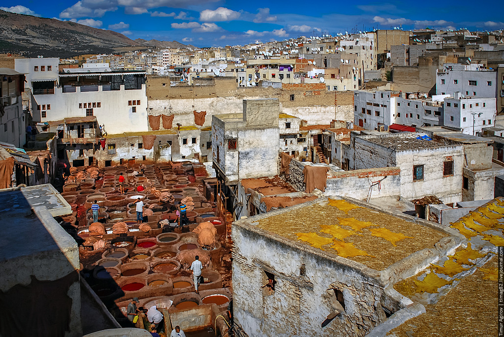 В сердце Медины – местные кожевенные заводы. Это одна из самых красочных панорам города. Большие глиняные кувшины, наполненные природными красителями разных цветов. Правда, это и невыносимо пахучее место.