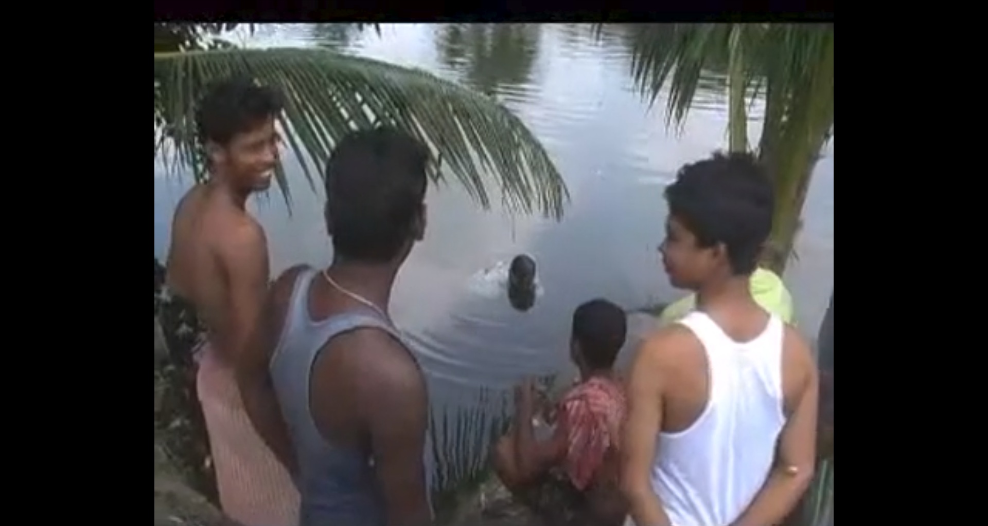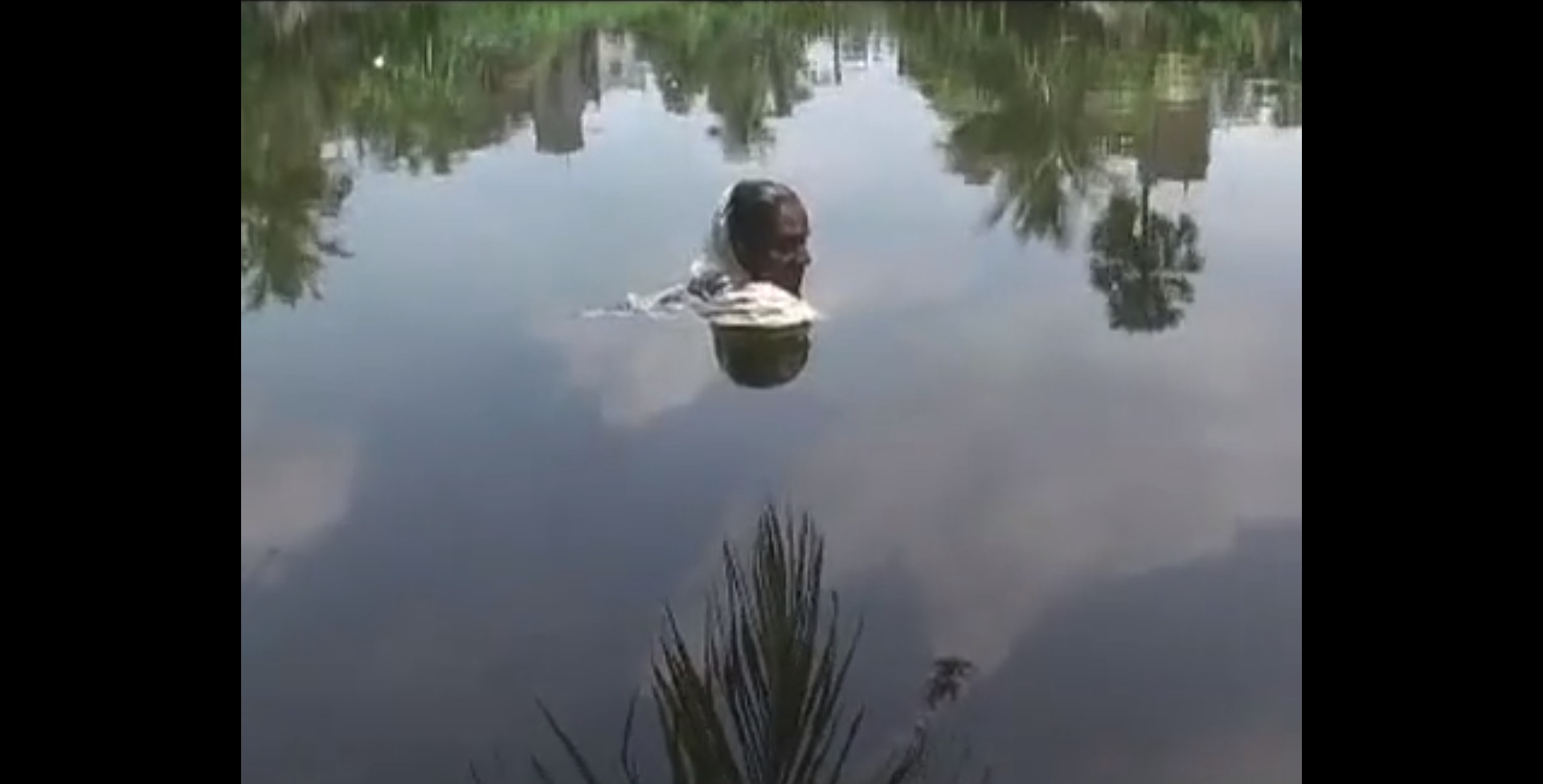 В индийском штате Западная Бенгалия женщина по имени Патаруни Гош вот уже 20 лет вынуждена проводить по шею в воде. С первыми лучами солнца она выходит из дома и направляется к озеру, в котором проводит 12-14 часов до заката. После захода солнца она занимается домашними делами, как и все обычные люди, и ложиться спать, чтобы утром проснуться и вновь спрятаться в озере.