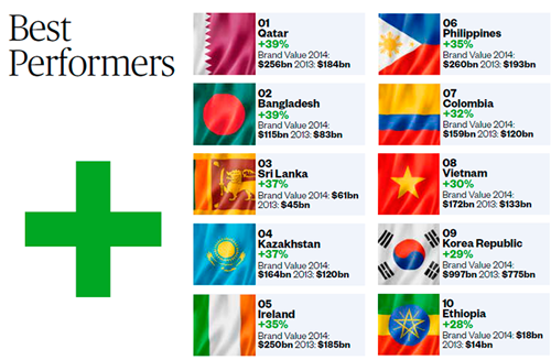 Бренд «Казахстан» за год подорожал на 44 млрд, что позволило подняться с 48 на 44 строчку рейтинга. По темпу роста стоимости РК разделила 3-4 место со Шри-Ланкой. Республика расположилась между Перу (43 место) и Колумбией (45 место).