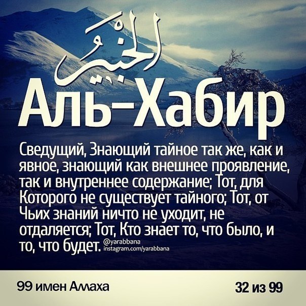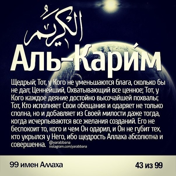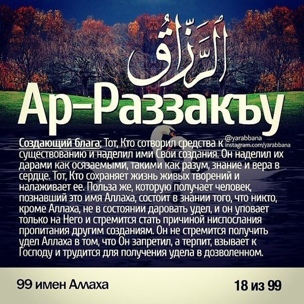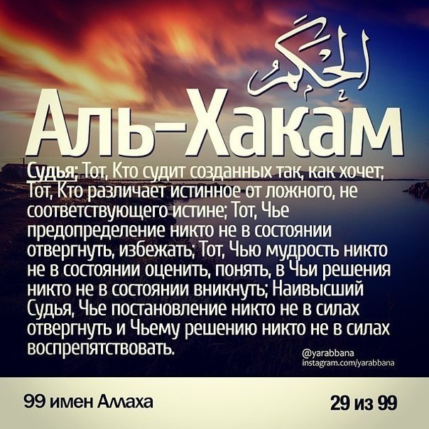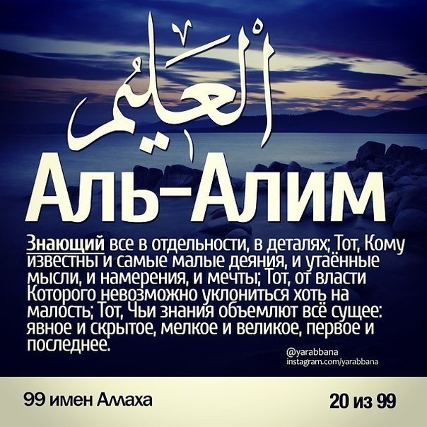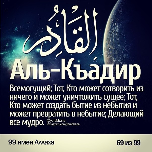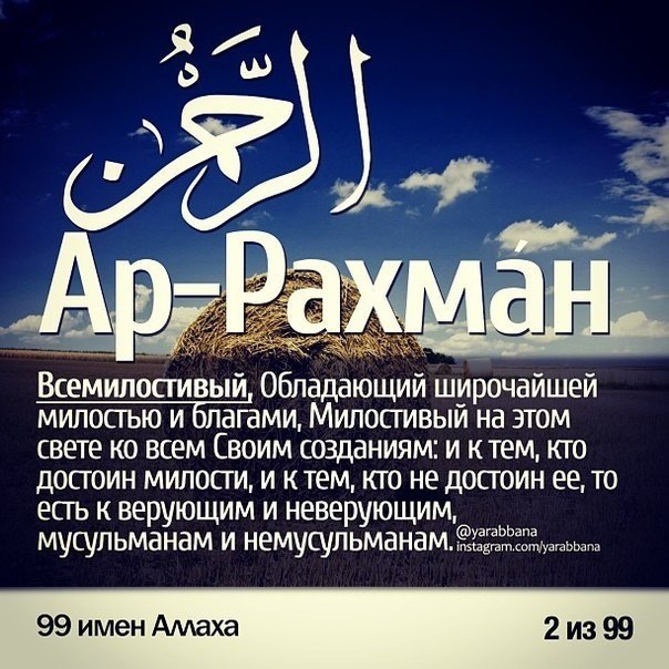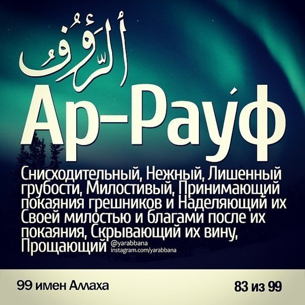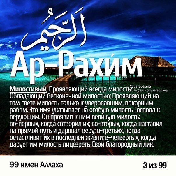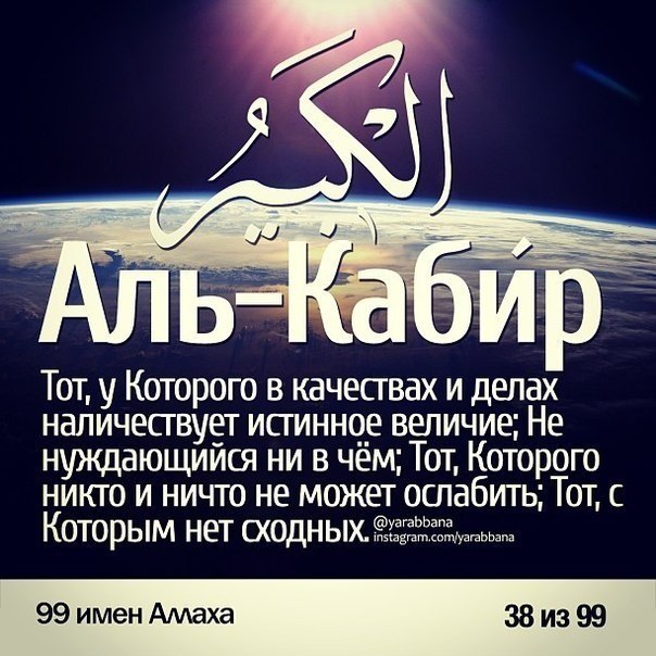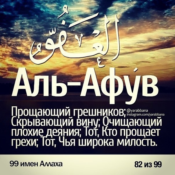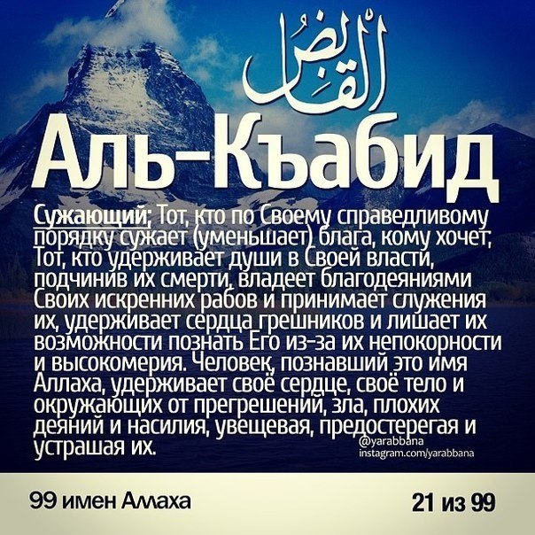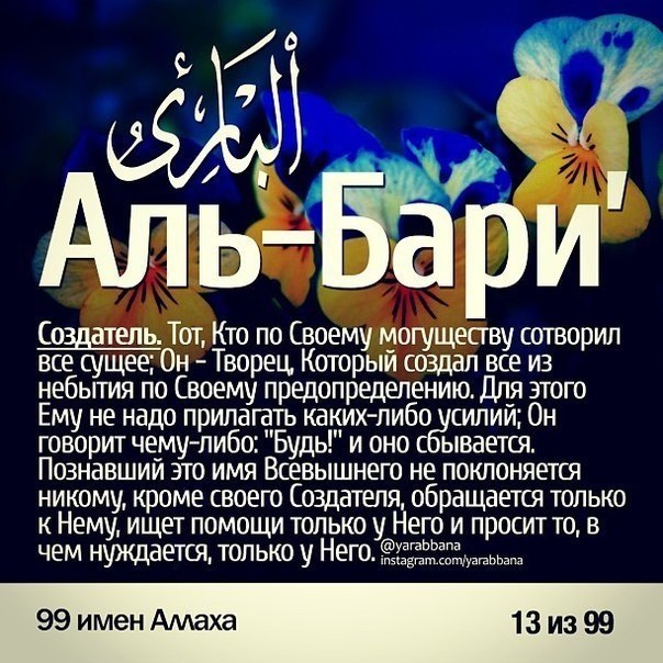 99 имён АЛЛАХА и их значения.
