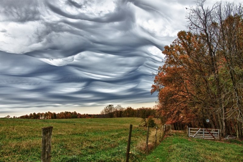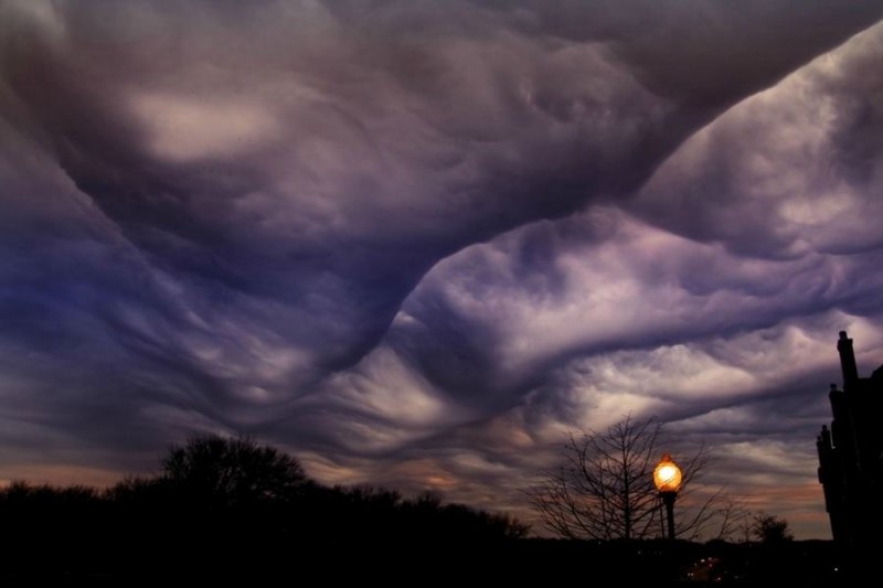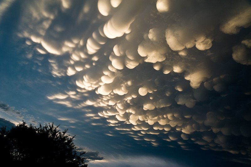 Mammatus clouds — один из редких видов облаков. Свое название они получили за характерную форму. Вымяобразные облака обычно окрашены в серо-голубой цвет, но при попадании солнечных лучей могут сменять палитру. Появление такой живописной «картины» в небе не предвещает ничего хорошего: формирование вымяобразных облаков свидетельствует о надвигающемся урагане или тропическом циклоне.